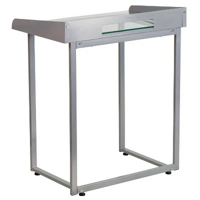 This Contemporary Desk with Clear Tempered Glass and Silver Frame provides a compact workstation for small spaces like dorm rooms, condos and loft apartments.