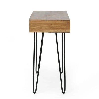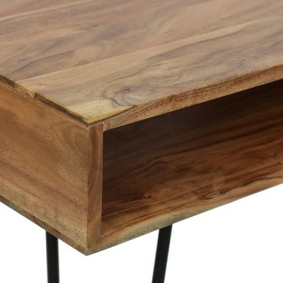 Whether you are working from your house or need a space to craft your home projects, our stunning desk is here to help. Created for both functionality and impeccable style, our refined office desk will not only provide a spacious work area but will also open up your interior space with its precise style. With a rich acacia wood top, storage space, and chic metal hairpin legs, this desk offers a sleek modern industrial design that will transform any room into one worthy of the most sophisticated.
