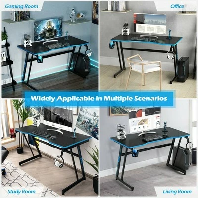 Are you still looking for a cool and sturdy gaming desk? Have a look at ours! Equipped with a crossbar and Z-shaped structure, the gaming desk has excellent weight capacity up to 220lbs. Coming with a wide desktop, the gaming desk allows you to put various items, such as your computer, keyboard, decorations, books, etc. Meanwhile, the desktop is made of MDF, which effectively enhances overall durability and the carbon fiber surface is easy to clean. Besides, this gaming desk comes with a headphone hook and a gaming handle rack which can store your things in an organized manner, and cup holder which allows you to place your favorite drinks. With gaming style, the gaming desk can help you create a gaming atmosphere. Specification: Color: Blue + Black/Red + Black. Material: MDF, Metal. Overall Dimension: 47.5” x 23.5” x 29”. Weight Capacity: 220 lbs. Net Weight: 33 lbs. Package includes:. 1 x Gaming Desk. 1 x Instruction.