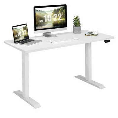 Lead a healthier and more productive life with our electric height adjustable standing desk.. Our stand up desk features a motor lift mechanism which offers smooth and noiseless height adjustment from 26” to 45 ” to meet your needs of various working postures. You can change it from sitting to standing with just a touch of the up/down button. It can help relieve your fatigue caused by sedentary work. The 48”x24” one-piece desktop provides a spacious working area that can support 2 monitors without collapsing. With excellent workmanship, the desktop features round corners and smooth edges to prevent you from being hurt. The heavy duty steel frame and adjustable foot pads make our standing desk super sturdy and stable. Besides, screw holes on the tabletop have been drilled, which can save much of your time and energy to finish the assembly work. . Specification: Color of Desk Frame: White. Color of Desktop: WhiteBlack. Material: Steel, Engineered Wood, PVC. Overall Dimensions: 48” x24” x 26”-45” (LxWxH) . Desktop Thickness: 0.7” . Speed:0.8”/s. Noise Level:≤45dB. Net Weight: 60 lbs . Weight Capacity: 155 lbs. . Package Includes:. 1 x Electric Standing Desk . 1 x Instruction.