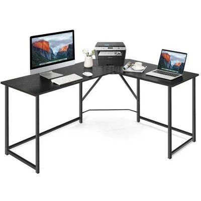 The modern L shaped desk is designed for you who want to create a comfortable working area. Large tabletop keeps all of your office supplies in great order. The metal frame with unique triangular corner bracket makes it superior in load bearing, durability, and stability. What’s more, the comfortable footrest lets you relax your legs and feet for all day comfort. Thanks to the stylish style and fancy look, it is suitable for any decoration of your home office. Enjoy your working time with this practical computer desk.. Specification: Color:BrownBlack . Material: Steel, Engineering Wood. Overall Dimension: 58”x 47”x30”(L x W x H) . Net Weight: 40lbs. Weight Capacity: 110lbs. Package Includes: . 1 x L-shaped Table. 1 x Instruction.