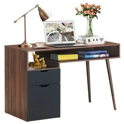 The multipurpose computer desk features open storage shelf, large drawer and cabinet, which provide spacious storage space and allow you to classify items orderly. After that, clean and tidy working environment has a positive effect on your working efficiency. In addition, you can place computer, magazines, cups, alarm clock and other decorations on the wide enough desktop. Sitting in the front of the computer desk, you will obtain much more comfort due to specially-designed ergonomic height. Safe as well as durable engineered wood through exquisite craftsmanship will provide long-lasting reliable service. Splayed legs and cabinet touching the ground ensures sturdy and stable construction. Specification: Color: As the picture shows. Material: Engineered Wood, Rubber wood. Dimension: 47″X22″X31″(LXWXH) . Net Weight: 77.5 lbs. Weight Capacity: 55lbs. Package Includes: . 1 X Computer Desk. 1 X Instruction.