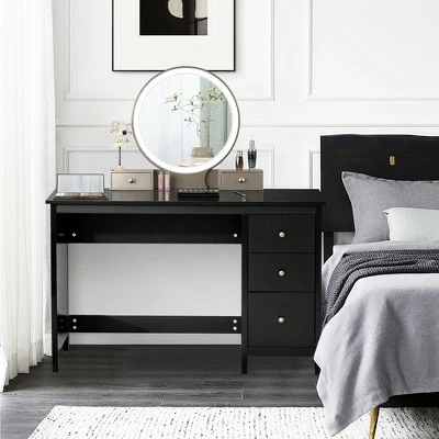 This office desk keeps a good balance between functionality and stylish design. . Made of durable MDF, the computer desk is sturdy and reliable for long service time. Coming with 3 large drawers, it provides enough storage space for computers, books, and other office supplies. Also, the office desk is designed with spacious tabletop to ensure optimal workspace and keep your daily essentials in order. With simple but elegant design, it is a perfect complement to your house and office. Besides, it is an ideal choice whether you need a spot to study, dress up or finish important work! . Specification: Color: WhiteBlack . Material: MDF. Overall Dimension:48”(L) x 20”(W)x 29.5”(H) . Drawer Size: 9.5”(L) x 15.5”(W)x 4”(H) . Net Weight: 68.5lbs. Weight Capacity of Each Drawer: 11 lbs. Weight Capacity ofTabletop:88 lbs. . Package includes: . 1 x Computer Desk. 1 x User Guide.