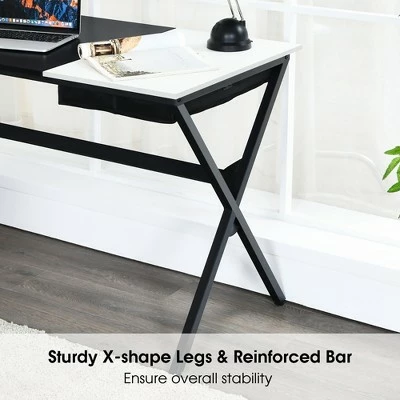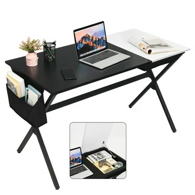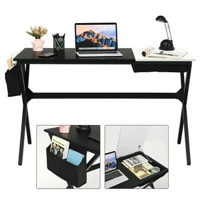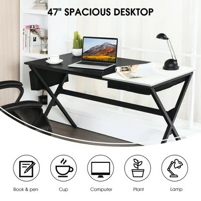 Our computer desk is a must-have table for your daily studying, writing or working in home and offices! An x-shaped powder-coated metal frame with premium MDF table top ensures the overall stability. Built-in drawer and the side storage bag are really convenient for you to place many office supplies, thus getting them immediately while working. This desk in the size of 47”L x 23.5”W x 29”H is suitable for being used as a computer desk, studying table or writing desk in home. It can also serve as an office desk in a company. With its modern style, it can be an unique addition to your home! If you are looking for a both nice and practical computer table, this is your best choice! . Specification: Color:WalnutBlack. Material: MDF, steel. Overall Dimension: 47’’L x 23.5’’W x 29’’H . Net Weight: 31 lbs. Maximum Loading Capacity: 330 lbs. Package includes: . 1 x Computer Desk. 1 x User’s Manual.