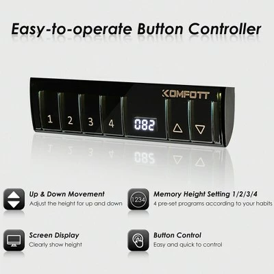- 4 Pre-set Memory Heights: Button controller offers simple and precise operation while lifting height can be clearly shown on its screen. Besides, 4 memory height settings can be saved in advance, thus conveniently achieving your ideal height and position anytime.