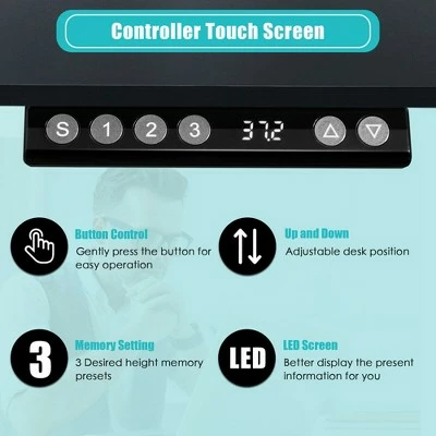 Our dual motor electric standing desk will help you keep a healthy working style since you can freely transform from sitting mode to standing mode! Height adjustable design with powerful lifting system well suits your different needs for daily use. You can choose to sit or stand during working time. It has 3 preset buttons to memorize your desired heights. Wide tabletop is spacious enough to hold many necessary office supplies. It can effectively avoid back pain to create a comfortable working position. The standing desk is constructed with engineered wood and steel frame for high sturdiness.. . Features:. Note: After assembling the digital keypad, you need to reset it the first time you use it.. Reset method: long press the ↓ key for more than 5 seconds. When the lifting table starts to run downwards and rebound to a certain height, accompanied by a ”Di—-” sound, it means a successful reset.. Specification: Color: Black / Coffee / White. Material: Engineered Wood, Steel. Overall Dimension: 55” X 28” X 27.5” – 45” (L X W X H). Net Weight: 93 lbs. Weight Capacity: 220 lbs. Noise Level: 40db. Power: 120V 60HZ. Package includes:. 1 x Standing Desk. 1 x Instruction Manual.