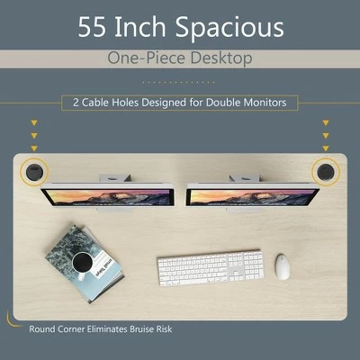 - Spacious One-piece Tabletop: Roomy working area space effectively improves working efficiency. Spacious desktop can accommodate monitor, laptop, mouse, books and many other office supplies. It is also designed with 2 cable holes for clutter-free environment. Besides, the cable management tray and hanging hook free up more desktop surface and bring much more storage convenience.