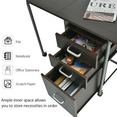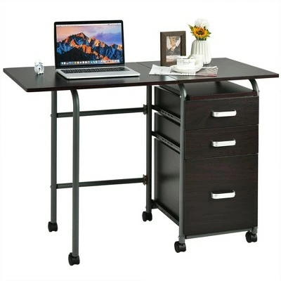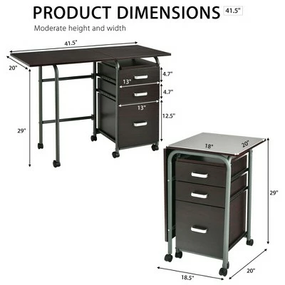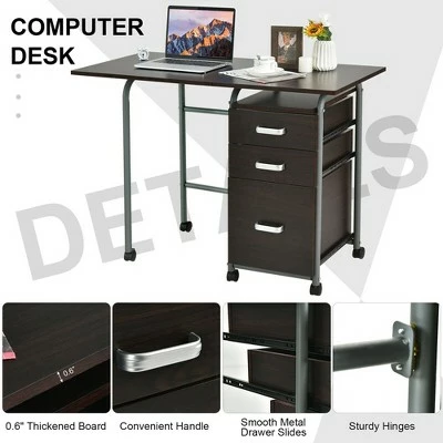 Our folding computer desk is must be a good choice for people who has a small living space, because you can folding it to half for the top when you do not use, which will save a lot space. The desk can easily fit with any decor in your house. With good construction, this desk is sturdy and reliable. Besides, there are three drawers, so you will have enough space to save your documents papers, or other private items. Six wheels will help your move it more easily. The simple and modern design computer desk will be perfect for home an office use. Do not hesitate to buy one! Specification: