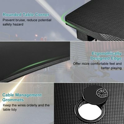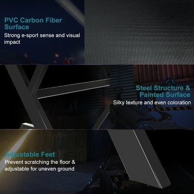 This is our brand new professional gaming desk which is a perfect choice for your enjoyable gaming time! It features large gaming desktop that can withstand 220 lbs of weight, providing ample room for your monitor, PC, laptop, speakers and more.PVC carbon fiber surface is scratch-resistant and easy to clean, reveals excellent performance to allow you to enjoy gaming in enough space. Equipped with a cup holder, a headphone hook and two controller stands, the E-sports table will keep all of your gaming gears organized and be convenient for your daily needs. X-shape frame constructed with steel pipes ensure the stability and durability of the table, accompanying you to enjoy your time in playing games. Good in quality and comfortable for usage, the gaming desk is really worth buying!. Specification: Color: as the picture shows. Main material: MDF + steel. Overall dimensions: 48.5”x23.5”x30”(LxWxH). Net weight: 40.5 lbs. Weight capacity :220 lbs. Package includes: . 1 X Gaming Desk. 1 x Instruction.