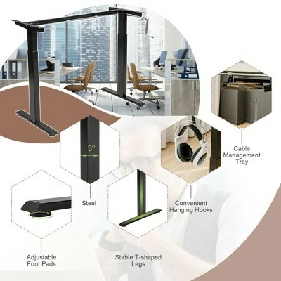 Are you looking for a height adjustable desk frame to pair with your single tabletop? Our sit stand desk frame will be your ideal choice! With a manual hand crank system, this desk frame lets you switch from sitting mode to standing mode to work comfortably throughout the day. You can adjust the height of the desk frame from 27.6” to 45.3” to promote better posture and increase productivity. For outstanding load bearing and stability, the framework uses a reinforced steel structure to ensure long service time. What’s more, 48” board or 55” board can be installed on the frame for versatile use and extra convenience. Enhance your work experience with this ergonomic standing workstation base!Assembly Video:https://www.youtube.com/watch?v=aL7hw0kKVzc Specification: Color: Black. Material: Steel. Overall Dimension: 41” X 23” X 27.6” – 45.3” (L X W X H). Net Weight: 36 lbs. Weight Capacity: 110 lbs. Package includes:. 1 x Standing Desk Frame. 1 x Instruction.