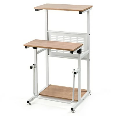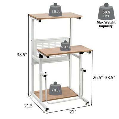Do not miss the perfect computer desk!. It is not only a computer desk, but also a presentation table. The height of 38.5” will make you comfortable when do presentations. Powerful functions make it worth buying. There is a printer stand included. Whether you work, study or play games, use it. Its compact size will not occupy much space, which makes it ideal for small units. With the foot pads of height adjustable function, it prevents shaking of uneven floor and will always make your desktop level. All of the details make it a perfect workstation. Do not hesitate to purchase. . Specification: Color: Oak. Material: Engineered wood. Overall Dimension: 22” x 21” x (27” – 38.5”) (L x W x H) . Net Weight: 20.5lbs . Package Includes. 1 x Computer Desk. 1 x User Guide.
