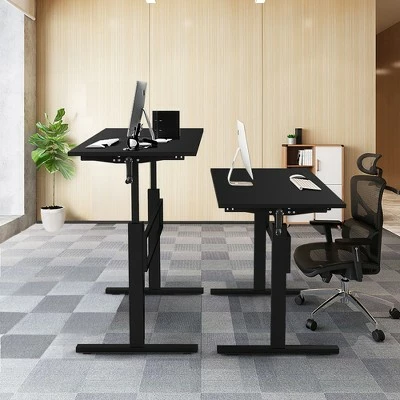 - Fine Craftsmanship: Made of premium MDF desktop and steel frame, this sit to stand up desk is sturdy and corrosion-resistant for long-term use. The surface treated by electrostatic spraying is smooth for easy cleaning. 2 horizontal bars provide extra support to ensure good stability and strong load-bearing capacity of 100 lbs.
