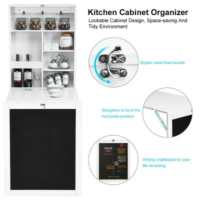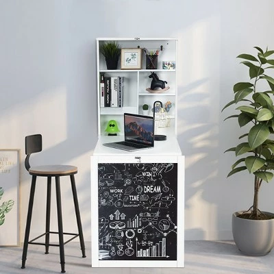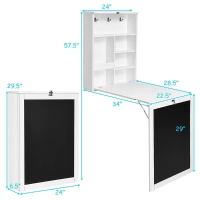 The wall mounted desk folds out to provide ample space for working and folds up to serve as the cabinet to keep tidy, an ideal space-saving solution for any homeowner looking for storing essential items to reduce clutter and optimize your personal space. Exquisite smooth provides a handy working surface and access to storage compartments when open. Let’s make the most of your existing space with this stylish and affordable fold-out convertible desk! . Specification: Color: White. Material: P2 standard MDF. Overall Dimensions: 34 x 24 x57.5 Inches (L x W x H). Folded Dimensions: 24 x 6.5 x 29.5 Inches (L x W x H) . Net Weight: 32.4 lbs. Weight capacity of the unfolded desk top :44lbs. Weight capacity of each cube:4.4lbs. Package includes:. 1 X Fold out Wall Mount Desk. 1 X User Guide.