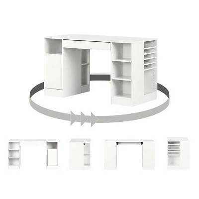 - The other module includes: (front) 1 open storage space defined by a fixed shelf and a drawer