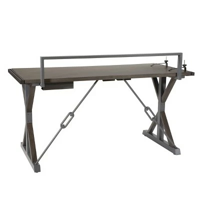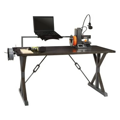 A perfect combination of form and function, the Creator Desk from OSP Home Furnishings™ is a makers’ work surface standout from every perspective. Its fresh, industrial-inspired design creates a modern workspace with greater adaptability. You’ll appreciate how its power strip bracket, and cable management keep cords organized while an ingenious accessory bar allows hands-free video ability, and keeps essential tools intuitively within reach. A universal 4-channel aluminum bracket with two clamps gives this multifunctional desk a place to hold detail work stationary and steady. Crafted of wood veneers and solid wood finishes complemented by durable steel tube construction, the Creator Desk makes a one-of-a-kind addition to any makers space.