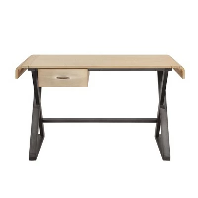 Add an industrial style and a pop of color to your decor with the Danton office desk. You’ll love the sleek look, and durable longevity of this piece made with gold aluminum top supported by metal legs in a stylish X-frame. Featuring a pullout drawer to organize your office essentials, boosting your productivity. It is truly the perfect piece for any office.