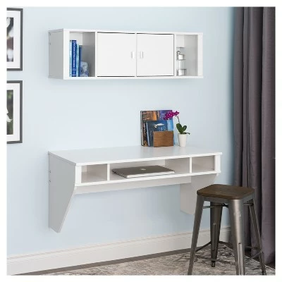 Optimize your space with Prepac’s Designer Floating Desk & Hutch. The combo is perfectly suited for any home office, den, living, room, kitchen or bedroom. The desk has a stable work surface that is ideal for any computer or simply as a place to get your work done. A rear “flip-up” door conceals a storage compartment that is ideal for power bars and adapters. No more messy wires cluttering up your workspace! The hutch provides lots of functional storage including two middle compartments with doors to tastefully conceal items as well as two open compartments to display books or small decorative items. Installation is a breeze with Prepac’s hanging rail system. Manufactured in Canada from non-toxic, laminated composite woods and meets all North American safety standards. Ships Ready to Assemble, includes an instruction booklet for easy assembly and has a 5-year manufacturer’s limited warranty.