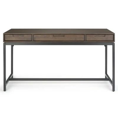 The Devlin Collection is made from richly-grained solid Rubberwood. This mid-century modern industrial collection has a clean angular metal base, with square, simple modern drawer and table top. With no visible hardware, and only simple wood pull handles, the solid Rubberwood top, is simple and uncomplex. The Devlin Desk has two working side drawers with ball bearing drawer glides and one centre flip down drawer/keyboard tray to maximize functionality. The 24″ x 60″ size is large enough for a well appointed home office, and narrow enough to fit into your living room or even kitchen. The Devlin collection includes coffee, console, end tables, tv stands, sideboard buffet, desks and bookcase.