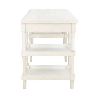Brimming with chic country flair, the Dixon desk in white washed Fir wood brings form and function to the home office. Open shelves keep essentials in plain sight while important papers can be stowed in its ample pullout drawer. The pull out drawer and four shelves provide easy storage space and the top, a smooth surface to work on. This desk can hold up to 60 lbs. The Dixon desk is a great addition for Contemporary, Country, Modern or Transitional style interiors.
