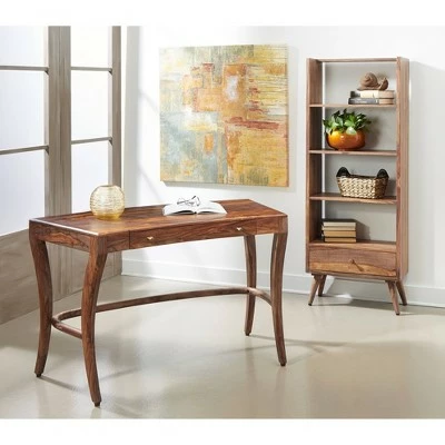 Handsome, hardworking and one of a kind. The distinctive grain – which will differ from desk to desk – gleams through the Sheesham Highlight Wash finish. With a gracefully curved body and legs, a spacious single middle drawer, and a large surface work area, this desk will be a pleasure to work at no matter where you are.
