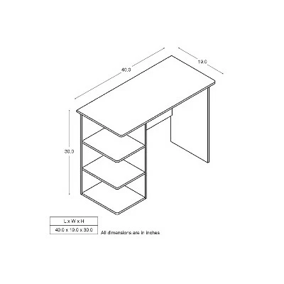 - Desk provides convenient storage for any home or office. Dimensions: 30″H x 40″W x 19″D.