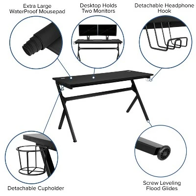 - Product Name: Emma and Oliver 55″ Black Computer Gaming Desk – Headphone Holder – Cable Management – Mouse Pad