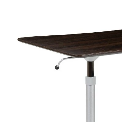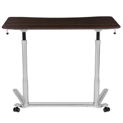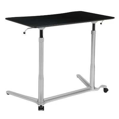 Are you choosing to live a healthier lifestyle? Start where you spend the most time, your office desk. This ergonomic standing desk gives you the option to not only work in a seated position but also while standing. We all know that sitting for hours is an unhealthy practice, but with long workdays it has become more common. Standing helps strengthen leg muscles, improves your balance and promotes healthy blood flow. Standing even burns more calories than sitting. The pneumatic levers on both sides of the table allow you to easily adjust the height with minimal effort. When preparing to work you should adjust the desk so the surface is at the most comfortable position for typing. The large surface make this desk suitable for laptops and desktop monitors. Since desktops are heavier than laptops, front adjustable glides were added to the front of the desk, while locking casters are added to the back legs, making this desk essentially mobile. Achieve a healthier way of working with this contemporary, versatile sit and stand computer desk. Additional Features: Pneumatic Height Adjustable Frame, Powder Coated Frame Finish, Front Adjustable Floor Glides, Back Locking Dual Wheel Casters, Base Size: 20-33″W