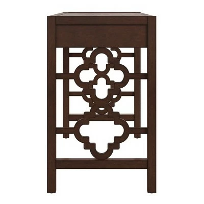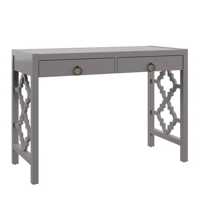Add fashion and function to your workspace with the Fachnan 2-Drawer Writing Desk from Inspire Q. This chic desk radiates a romantic aesthetic with its quatrefoil base design and brass ring drawer pulls. Two ample drawers are available to store all your writing essentials while not compromising the modern, elegant look of the overall piece. Crafted from reliable poplar wood, this desk comes in a variety of neutral tones to suit your unique style.