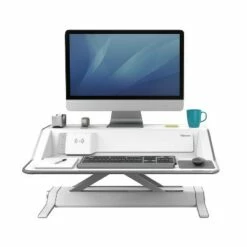 Sit-Stand with charging station. Features 22 different height settings and 17” of vertical adjustment so you can work in a position that’s perfect for you. Sit-Stand with charging station. Patent-pending Smooth Lift Technology™ keeps your workstation stable and makes changing positions effortless. Contains Microban antimicrobial technology for powerful, continuous product protection against bacteria. Integrated 2-port USB charging station also features wireless charging for Qi-enabled devices. BIFMA Tested; Holds up to 35 lbs. Innovative cord management with rear USB ports for your keyboard and mouse allows your entire workspace to move freely with you. Sold as 1 Each.