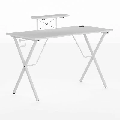Up your gaming experience with this performance gaming desk to keep you committed to getting through the various player levels. Remove the monitor platform to house dual screens for an extreme gaming experience. For excitable players, this game station has a cup holder to prevent accidental spills. The multi-function workstation powers you through game sessions and work demands on a sturdy x-shape frame. Reduce neck strain by placing the monitor on the platform. Always know where your headset is by placing on the headset hook in between games. A cable management grommet offers a clutter-free location to feed cords. Upgrade the gamer or salesman in your home or office with this computer gaming desk. Complete your gaming setup with our Gaming Chair Racing Office Ergonomic Computer PC Chairs. Additional Features: Detachable Headphone Hook (3.5″W x 3.75″D) is convenient to retrieve, powder Coated Frame Finish, Screw Leveling Floor Glides, Ideal Environments: home office, bedroom, dorm room, call centers