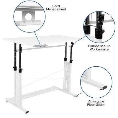 Wouldn’t you like to have a desk that adjusts to suit the needs of your preferred height? With the majority of the market selling fixed desks you’re now provided with the option to set a desk at your desired working height. Treat this table like your regular office desk, set to your preferred height and forget about it! You tend to get more accomplished when you’re comfortable and this ergonomic office desk with its adjustable frame will get you in the groove. Unlock the clamps and push in lever to raise the frame, then snap the clamps back into place for a sturdy worksurface. This modern office desk is backed by a stabilizing pedestal base with adjustable floor glides. For those of you that like to sit up a little higher an adjustable office desk will be your best investment. Complete your height adjustable desk setting by coupling with your favorite standard height office chair or drafting chair. Additional Features: Secure table surface by closing clamps, Stabilizing Pedestal Base with Adjustable Floor Glides