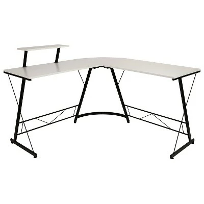 - L-Shaped desktop provides large surface for computer accessories or gaming consoles