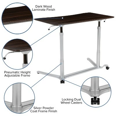 Are you choosing to live a healthier lifestyle? Start where you spend the most time, your office desk. This ergonomic standing desk gives you the option to not only work in a seated position but also while standing. We all know that sitting for hours is an unhealthy practice, but with long workdays it has become more common. Standing helps strengthen leg muscles, improves your balance and promotes healthy blood flow. Standing even burns more calories than sitting. The pneumatic levers on both sides of the table allow you to easily adjust the height with minimal effort. When preparing to work you should adjust the desk so the surface is at the most comfortable position for typing. The large surface make this desk suitable for laptops and desktop monitors. Since desktops are heavier than laptops, front adjustable glides were added to the front of the desk, while locking casters are added to the back legs, making this desk essentially mobile. Achieve a healthier way of working with this contemporary, versatile sit and stand computer desk. Additional Features: Pneumatic Height Adjustable Frame, Powder Coated Frame Finish, Front Adjustable Floor Glides, Back Locking Dual Wheel Casters, Base Size: 20-33″W