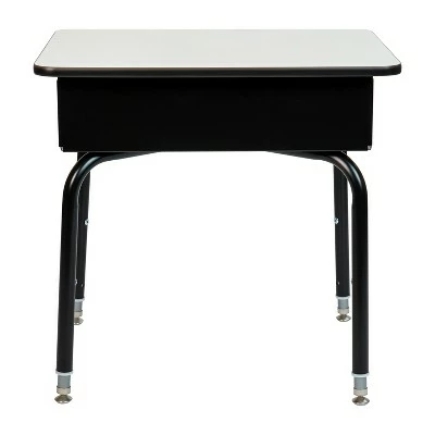 If you need a sturdy addition to the classroom, a dedicated workspace for homeschooling and homework, or a place for the little ones to playschool then the Student Desk with Metal Book Box is just the ticket. The high pressure laminate top is .625 inches thick with a black lacquer edge treatment for safety. Under the desktop is a spacious, heavy-duty, black metal book box with ample room for books, papers, and other supplies. The one-of-a-kind crisscross tubular frame ensures stability and the legs are height adjustable to fit students of all sizes. Adjustable nylon glides keep the desk from wobbling on uneven surfaces and protect your floors by sliding smoothly when you need to move them. This open front book box desk is recommended for students from elementary through high school. Additional Features: Silver Powder Coated Lower Legs, Black Upper Frame Finish, Specialty Crafted Crisscross Frame attaches to book box at 5 points and offers superior stability, Adjustable Nylon Glides protect flooring, Made to last design with some assembly required, Open Front Desk for classroom or remote learning from home