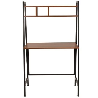 - Product Name: Flash Furniture Wilmette Cherry Wood Grain Finish Computer Desk with Storage Shelf and Black Metal Frame