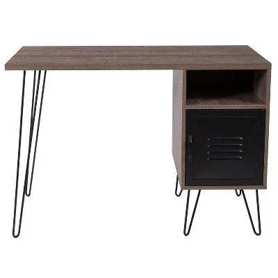 - Product Name: Flash Furniture Woodridge Collection Rustic Wood Grain Finish Computer Desk with Metal Cabinet Door and Black Metal Legs