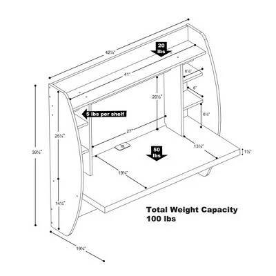 Optimize your space with Prepac’s innovative and stylish wall mounted desk. Perfectly suited for any home office, den, living room, kitchen or entryway. The stable work surface is perfect for your computer or simply as a place to get your work done. The side compartments and top shelf provide functional storage and visual appeal. Installation is a breeze with Prepac’s innovative metal hanging rail system. Manufactured in Canada from non-toxic, laminated composite woods and meets all North American safety standards. Ships Ready to Assemble, includes an instruction booklet for easy assembly and has a 5-year manufacturer’s limited warranty.