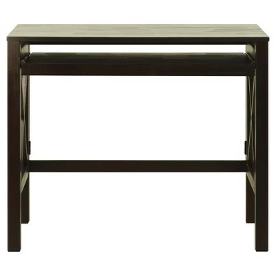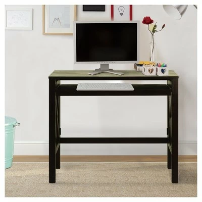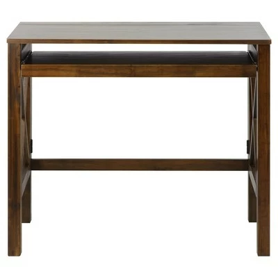 Pop-up productivity, this X-Design style desk is constructed from solid wood for lasting use. Equipped with an accompanying roll-out desk to maximize your workspace. Foldable design means effortless transportation and storage. No assembly required. Product dim (extended): 36″W x 18″D x 30″H. Folded dim: 36″W x 4.75″D x 30″H. Weight capacity: 100lbs (Top), 35lbs (Shelf). 3″H for the keyboard tray.