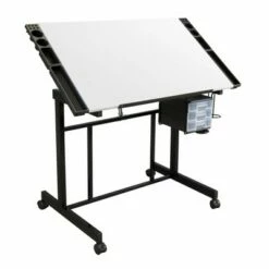 The Multi-Purpose Folding Table by Studio Designs features a large 47.5-inch-wide work surface with a drop down platform that adjusts to 6 height positions. Once the platform is lowered this table can accommodate a sewing machine or keyboard. This table adapts to work in almost every room in the house. Some of the possible uses include: a sewing table, computer table, craft table, general office machine table, extra work space or a folding party table for gatherings.