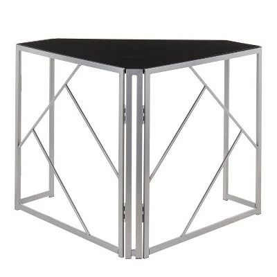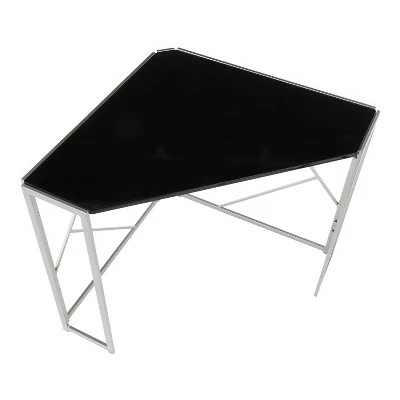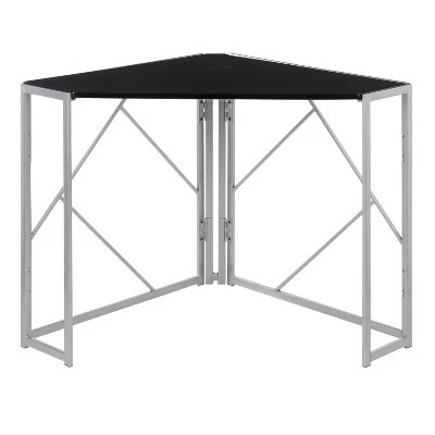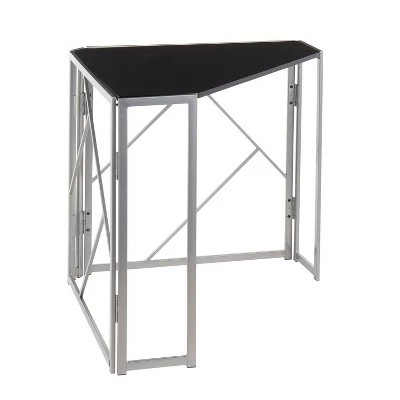 With its pleasant design and modern lines, the Folia Corner Desk by LumiSource is a unique statement in any space. The Folia Corner Desk features a silver painted metal frame and a black wood top, sure to add a touch of glamour to your surroundings. Foldable for easy storage and mobility.