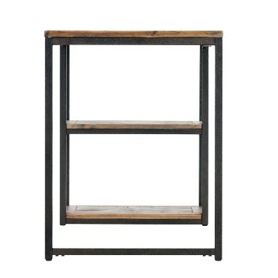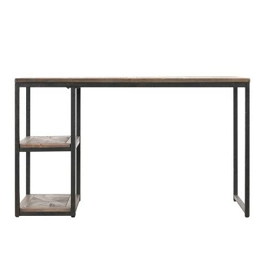 Reclaim your style with the Aiden Lane Garris Reclaimed Wood Writing Desk. Slatted, harvested wood desktop and shelves supply rugged storage for your laptop and workstation accessories.
