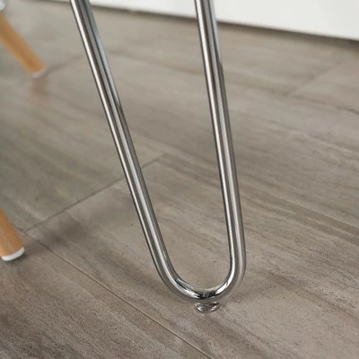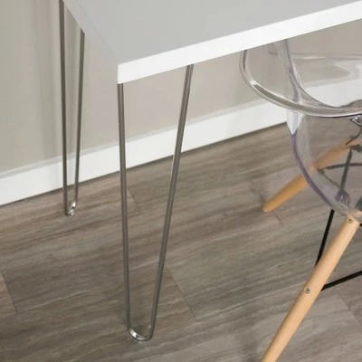Upgrade your work-from-home or vanity setup with the Gibson Modern Glam Hairpin Leg Writing Desk by Saracina Home. The MDF wood and laminate tabletop sports a classy gloss finish that reflects your best work. Sturdy metal hairpin legs support the computer desk with a tasteful nod to mid-century modern style. Set up your laptop, makeup brushes, or potted plants on the versatile table to make the piece fit your needs.