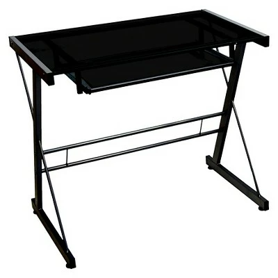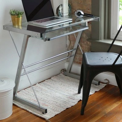 Try out this innovative solo computer desk by Saracina Home in any space you need a nifty workstation. Use it as a sleek writing desk, a futuristic video game center, or a stylish homework bureau. Its streamlined design offers a tidy look. A drop-down keyboard tray is included, as well as adjustable feet. Place it in your study, living room, or bedroom and picture all your fun projects blooming into fruition.