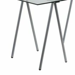 Minimalist design meets modern flair in this spacious tempered glass desk. Inverted “V” shape legs give this piece an architectural appeal that is sure to please. This desk provides a great option for managing daily household bills, studying or for casual computer usage. The minimalistic legs and clear glass creates an airy and light footprint that is perfect for smaller spaces. Use in the living room as a console table or in the bedroom as a vanity table. This desk shows off a sleek appeal that will complement any contemporary work space.