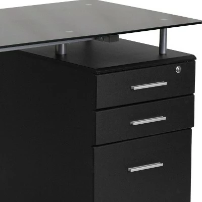 The Black Computer Desk with Glass Top and Three Drawer Pedestal is an efficient and secure workstation that works well in small spaces.