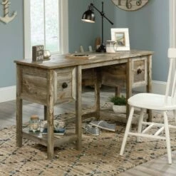 Motivation is easy to come by when your home office or work space is looking stylish and up to date. Give your office the pick-me-up it deserves when you add the charming good looks of this desk from the Granite Trace collection. This home office desk offers a spacious top surface that provides you with the room you need for all your office supplies like your laptop, stacks of folders, notepads, and your hot cup of coffee. This office desk features two drawers with full extension slides. The file drawer holds letter-size hanging files so you can keep important papers organized. The two lower open shelves provide you with additional space for convenient storage. This computer desk accommodates optional Hidden Wireless Qi Compatible Charger by Eggtronics 424134 (sold separately – visit sauder.com for more information). This writing desk is finished on all sides for versatile placement throughout your home. Finished in Rustic Cedar and detailed with attractive hardware, this good-looking desk will have you ready to work!