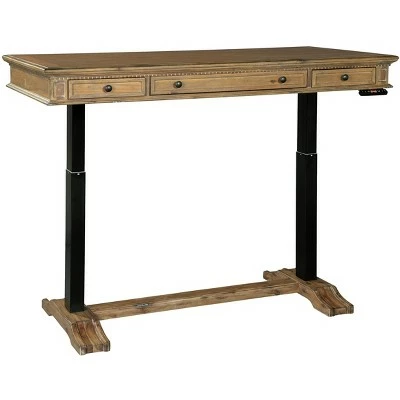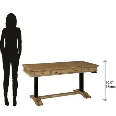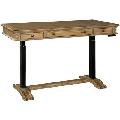- Lift desk of acacia veneers and solids featuring a framed planked top.