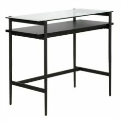 Work from home in mid-century style with this modern desk. The sleek lines of its steel frame are offset by a sturdy tempered glass top, allowing you a clear view to the woodgrained shelf below. Its open lower space provides plenty of room to settle in and take on the day. Go contemporary in Black Bronze or glam in golden brass to elevate your home office, game room, or vanity area.Features : Hand crafted Black Bronze finish is applied to the steel frame.Features a durable tempered glass top and black woodgrain shelf.The desktop has a weight capacity of 35 lbs. while the lower shelf can support 15 lbs.Desk features open lower space with wraparound crossbar.Features easy assembly.Clean with a soft, dry cloth; no harsh chemicals or abrasive cleaning materials.Specifications : Product Weight : 35.70 lbs