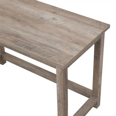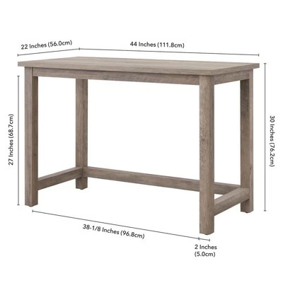 Cultivate modern farmhouse design in your home office, game room, or vanity area with the streamlined silhouette of this Parsons-style desk. The simple squared lines of the base and desktop are finished in warm rustic tones to suit your existing color scheme and décor style. The desk’s open lower space provides plenty of room to settle in and take on the day. It’s time to work from home in style!Features : Finished in gray oak.Constructed of sturdy MDF wood.Clean with a soft, dry cloth; no harsh chemicals or abrasive cleaning materials.Features easy assembly.Specifications : Product Dimensions : 22″ x 44″ x 30″Product Weight : 44.3 lbs