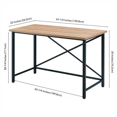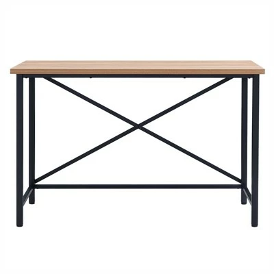 Elevate your home office, game room, or vanity area with the streamlined modern look of this contemporary desk. The sleek lines of its steel frame are offset by a sturdy MDF desktop, allowing you to personalize your workspace against a clean backdrop. Its open lower space provides plenty of room to settle in and take on the day. It’s time to work from home in style!Features : Hand crafted black finish is applied to the steel frame.Features a durable MDF wood desktop.Weight capacity is 40 lbs.Desk features open lower space with wraparound crossbar and an X-shaped rear support.Features easy assembly.Clean with a soft, dry cloth; no harsh chemicals or abrasive cleaning materials.Specifications : Product Weight : 40.60 lbs